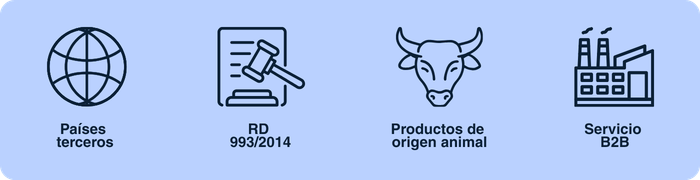 Para productos de origen animal destinados al consumo humano que se exporten a países fuera de la Unión Europea: carne y sus derivados, pescado y productos de la pesca, lácteos, huevos y ovoproductos, entre otros.